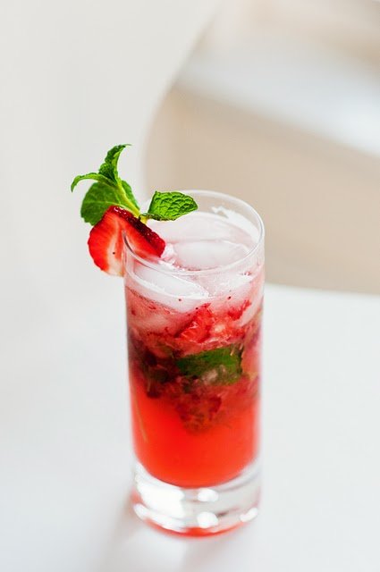 3. Garnish with mint sprigs or strawberry slices. Makes 1 drink.