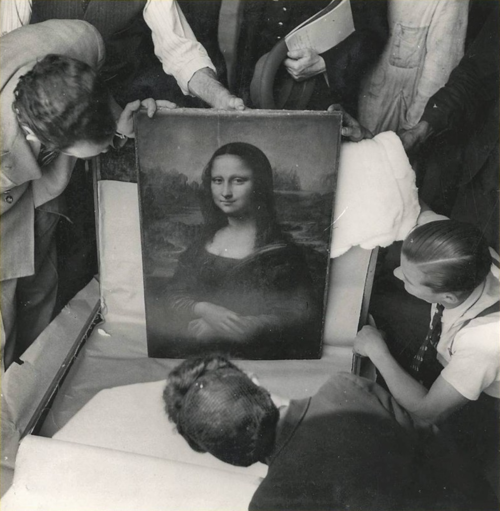 Amazing photo of the Mona Lisa being unwrapped.