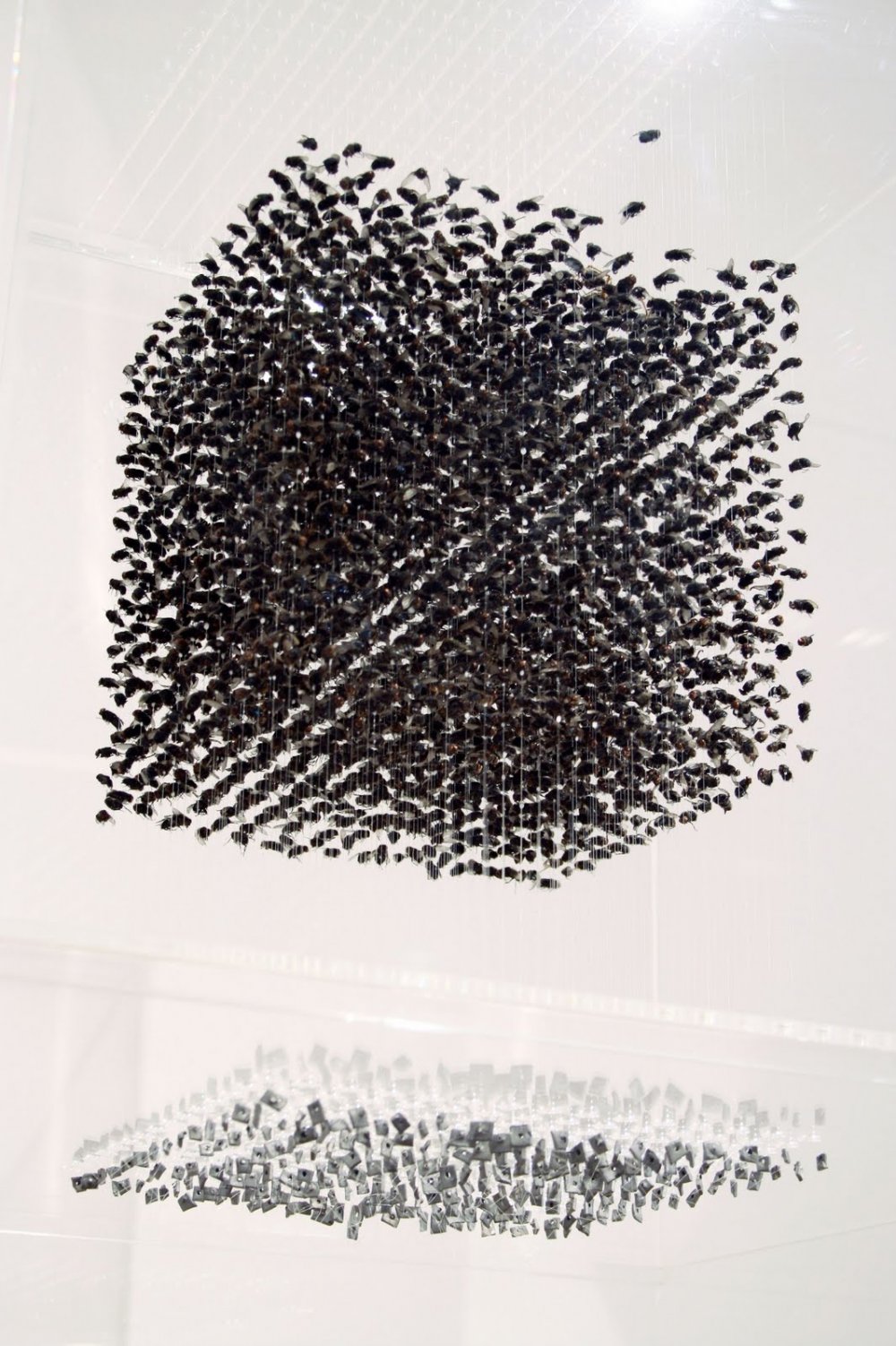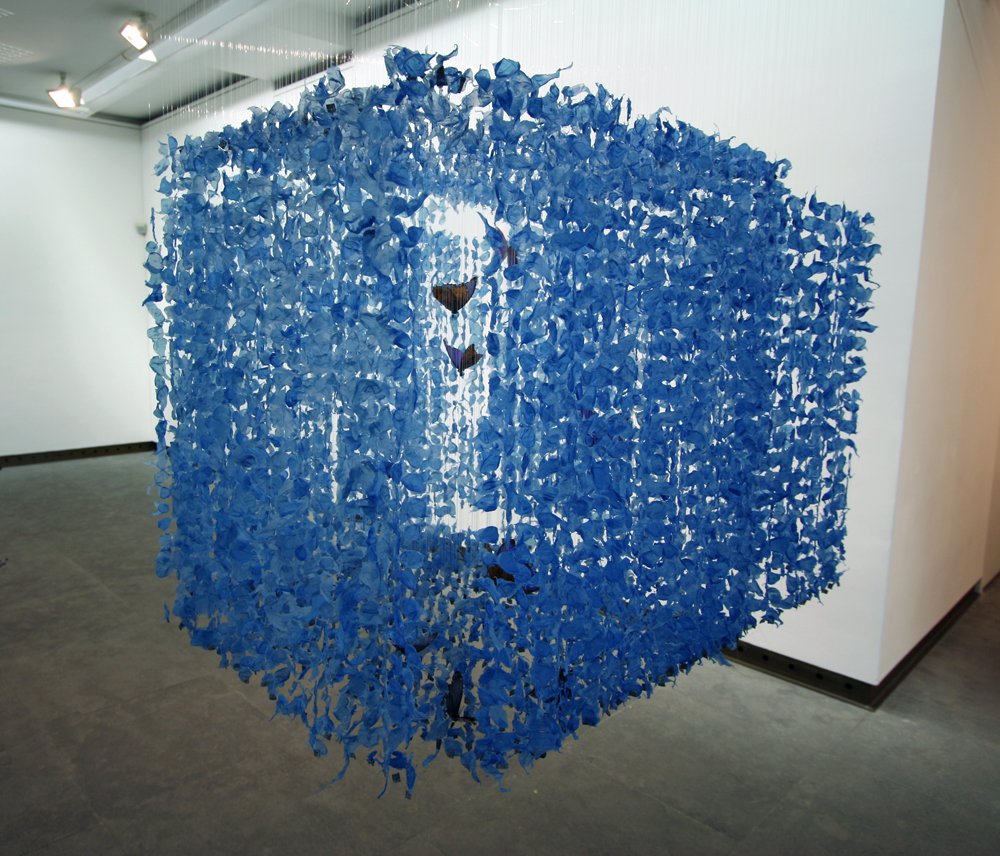My work is about our relationship with the rest of nature, explored through notions of change, the passing of time, and the transience of everything around us. For me, creating seemingly solid structures or forms from thousands of individually suspended elements has a direct relation with my experience of these forces. There is a sense of fragility and a lack of solidity that carries through all the sculptures. I feel as if they are somewhere between movement and stillness, and thus in possession of a certain energy.
