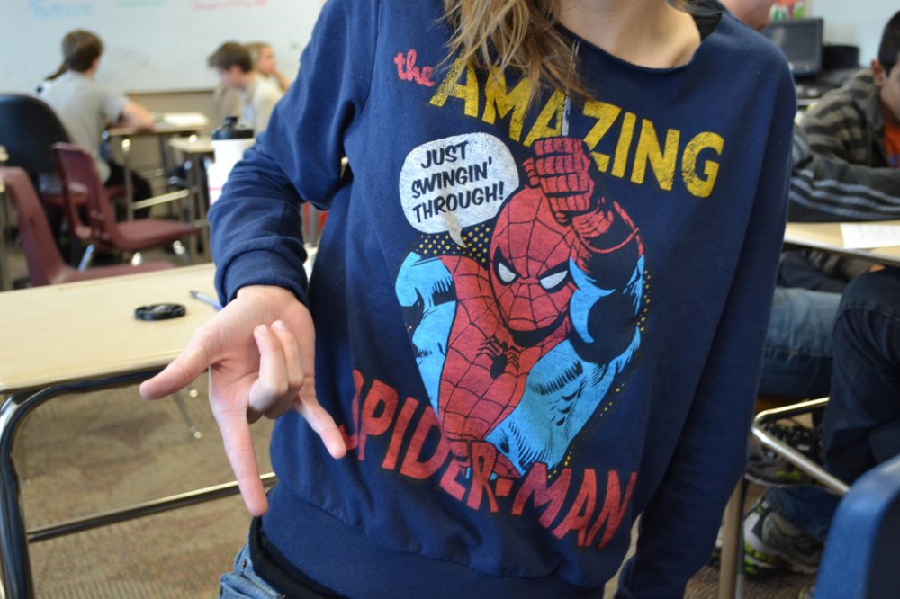 Diggin' this sweater. Everybody loves Spider-Man...I mean girl.