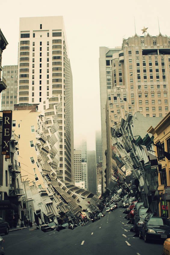 Nicolas Kennedy Sitton‘s Twisted series uses photographic manipulation to distort the architecture of San Francisco. The photographer adds concentric circles to the images to form new shapes, with the buildings seemingly folding and toppling into themselves.