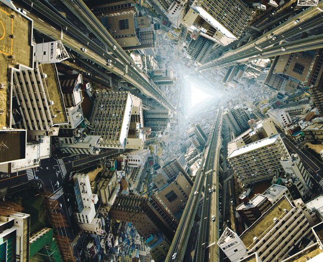 You are seeing triple, but it's not from the drugs. These kaleidoscopic images were created by Japanese architect and photographer Kazuhiko Kawahara (moonlighting under the name Palla). In 2002, Palla began digitally manipulating urban snapshots and posting them on his blog, Pallalink.net. This led to a little ad hoc crowdsourcing: Site visitors left remarks and suggestions that Palla channeled into his art. "Thanks to everyone's comments," he says, "the quality of my work has gotten better." (It's a two-way street: Earlier this year Palla donated The Unfold Cityscape, above, to the open source movie collective a Swarm of Angels.)