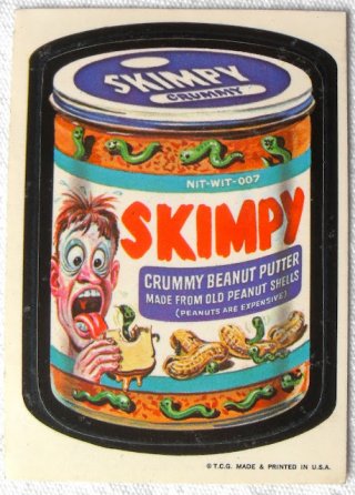 The illustrations are really great. These stickers are pretty much making fun of packaging from everyday products you find at the supermarket. They almost have a Mad magazine/Garbage Pail Kids feel to them. They were gross, funny and everything your parents told you to stay away from. Miss this type of humor. Is there anything of this nature today for kids of this generation?