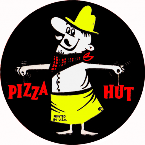 "From the same great Ebay lot as my other two Pizza Hut stickers. Another early 1970's Pizza Hut sticker. I call this one "The Dangler" since Pete is just dangling the logo there.