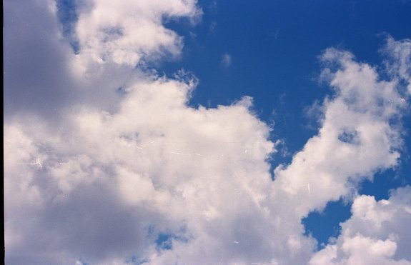 Nice photograph of clouds in the sky. Photographed on Ektar 100 Kodak film.
