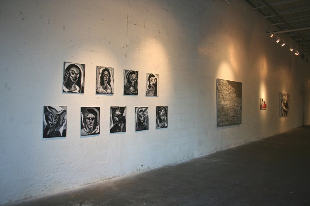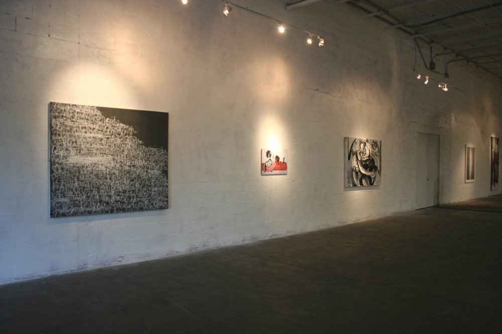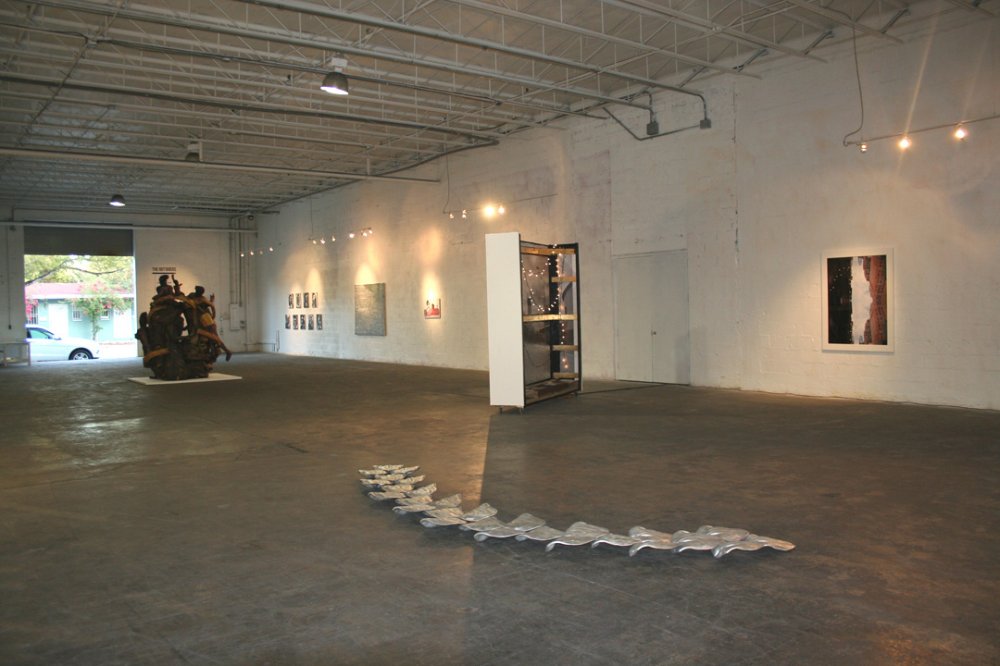 Installation view: (Left to R) Photograph, David Cabrera "Untitled" 2011, Nicole Soden "Swallow" 2010, David Marsh "Again Sorry" 2010 and Johnny Robles "Gushing Light" 2008