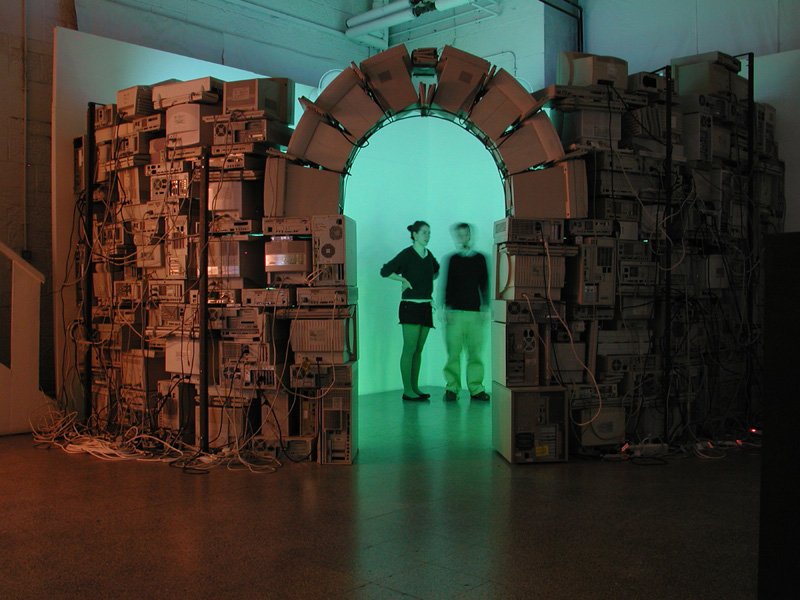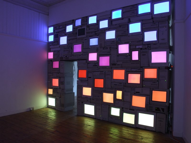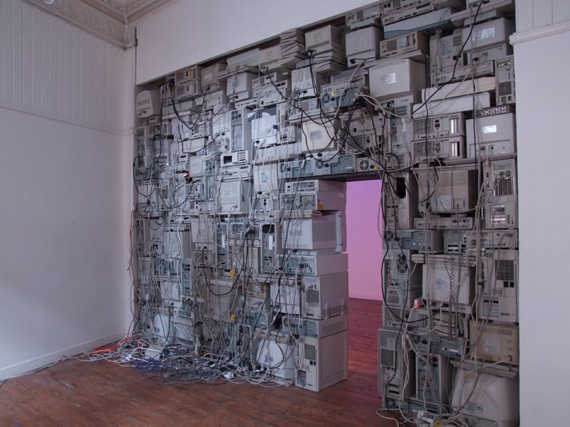 This is crazy cool. Sandy Smith made this installation of all these different computer model types to make this installation room. The piece is titled Mauritian Sunset and it was shown in 2006. Can you only imagine dealing with all of those cords? Bravo!