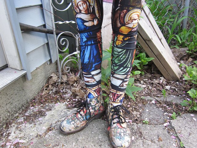 "Ibought these James Lillis holy leggings on BlackMilk and they've become a really important part of my identity. My Docs are falling apart and the sole is halfway disconnected from the rest of the shoe so I like to wiggle my toes to make my feet talk." - Style Rookie