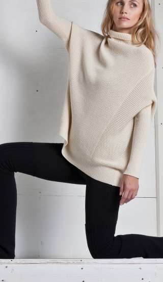The knitted sweaters (NIT), hand felted dresses and tops (FELT) and foundation jersey pieces of tanks, bodysuits, and leggings (PHRAME) collectively present a unique line of architectural building blocks. N:F:P additionally offers a distinctive line of tunics, dresses and floor-length gowns using a signature felting technique, one of the oldest methods of fabric-making. NEW FORM PERSPECTIVE marries felting with diaphanous featherweight jerseys in subtle, muted colors creating stunning, sophisticated, modern foils for layering the knits.