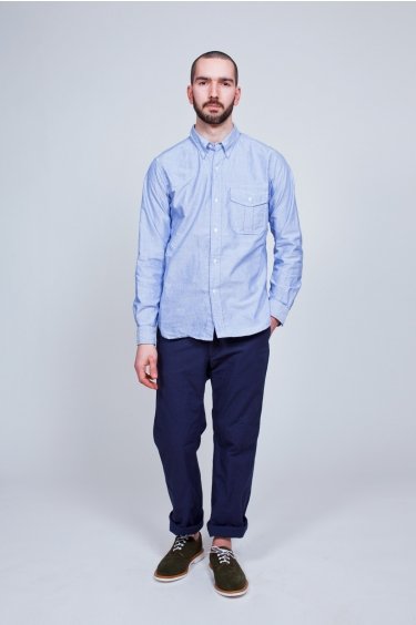 Daiki Suzuki's last collection for Woolrich Woolen Mills is here. As always, great sense of detail work and all production takes place in the USA. The Upland shirt is s a true classic from the WWM collection. Slim fitted, made in a heavy chambray cotton and features a button down collar, chest pocket with flap and hunting seam detailing on shoulder. Rounded hem and placket detailing.