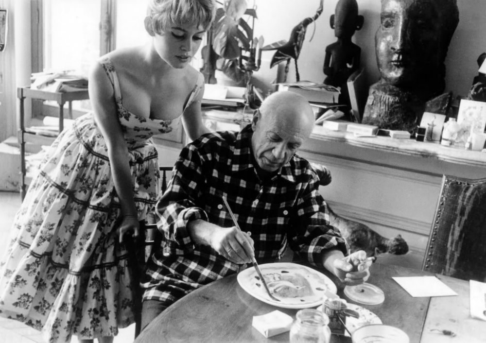 Brigitte Bardot at Picasso's studio in 1956. Athough I added these pics into this post, she was never his muse. She tried to be, for public attention. Picasso was never that interested. LOL