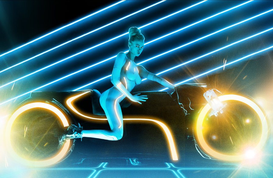 This is a real clever photo shoot for Playboy. It's a dedication for the cult 80’s film Tron. I heard the sequel sucked. I never saw it, but this is definitely a sexy look for cyberspace battle.