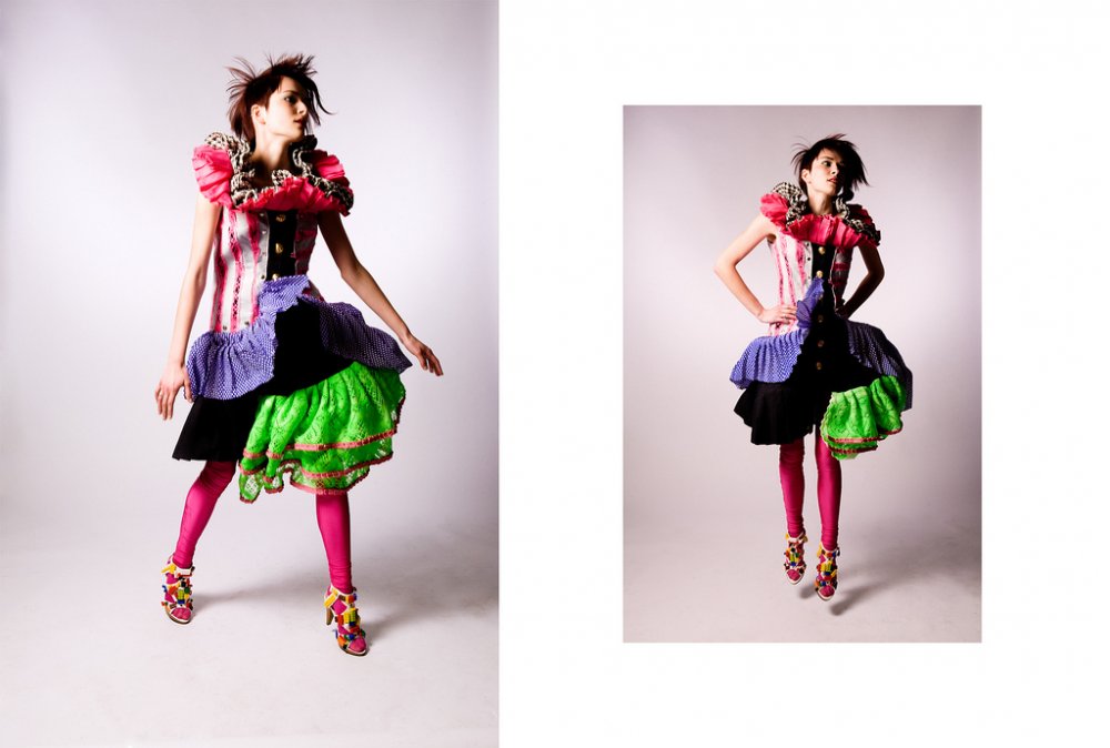 Pop trash victim into fashion, involved in quasi-cinematic photographic series,