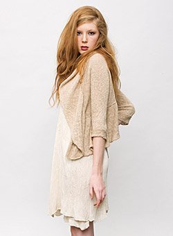 Collections are all-handmade in Australia. This range encapsulates lightweight garments in fine silk & hand-knitted linen; referencing the craft of complex lacy knitting techniques, and blending hand-dyed and machine knitted fine silk, by Australian textile designer, Nikki Gabriel.