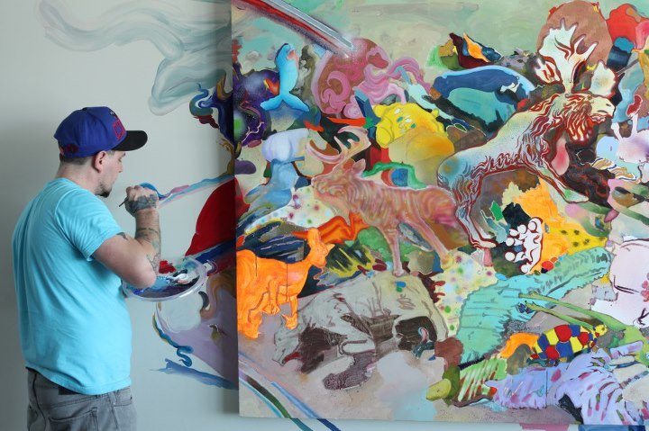 Brandon Opalka was born in Virginia, and moved to South Florida in his early teens. Graffiti was the first visual form that attracted him. Mark-making with spray cans defined his middle and high school years. After spending one semester at IFAC (International Fine Arts College), Opalka left to make art full-time. He worked with the collective FeCuOp (with artists Christian Curiel and Jason Ferguson). As a self-taught painter, Opalka makes art on walls and canvases. As such his exhibition history contains some walls that cannot be listed here. He has had one-man exhibitions at Rocket Projects, Ingalls & Associates and Dorsch Gallery. His work has been curated into major group exhibitions at Tomio Koyama Gallery in Tokyo, Japan; Whitebox, New York; and Bass Museum of Art, Miami, FL. He has exhibited extensively in Miami. Notable venues include Casa Lin, Open Space, Miami Beach Botanical Gardens, The House and Locust Projects. Currently, he is exhibiting in the Salon de Notre Societe show in the Primary Projects in Miami, FL. He lives and works in Miami.