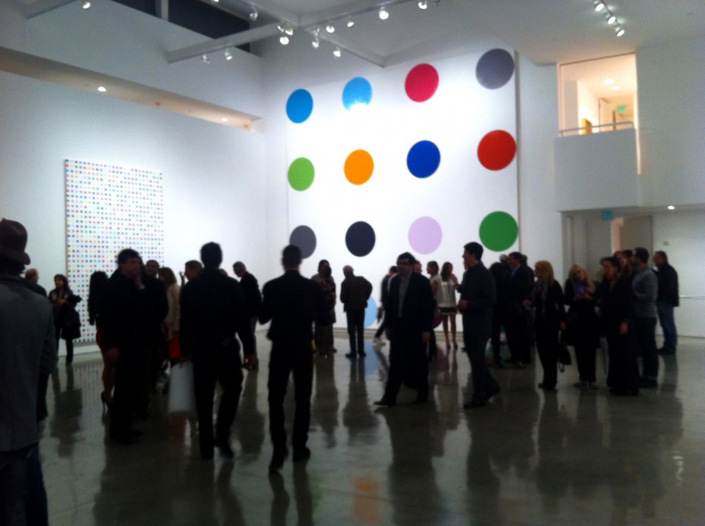 A rhinestone-wearing Damien Hirst explains the theory and thought behind his infamous spot paintings in the latest short from filmmaker Matt Black. The legendary British artist, made famous by submerging mammals in formaldehyde and creating jaw-droppingly expensive jewel-encrusted skulls, has become one of the most prolific and lucrative names in contemporary art. The Complete Spot Paintings, 1986-2011, his series of 331 white canvasses imbued with rows of multicolored dots, are currently on display at all 11 of mega-gallerist Larry Gagosian’s sites around the globe. Manufactured largely by Hirst’s army of assistants, the paintings range in size and detail, with the most recent, completed in 2011, containing some 25,781 spots each 1mm in diameter; no single color is ever repeated on a canvas. Black first encountered Hirst’s hyper-symmetrical series in the mid 1990s, and found that his opinion on the works slowly developed from ambivalence to fascination. “When you are in a room full of them, they are overwhelming and disturbing; these dots staring at you creates a real sense of anxiety,” says Black. “His work always has an aggressiveness, and these are no exception.”