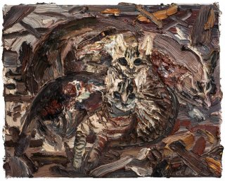 And then there is Allison Schulnik’s oil-thick exhibition at ZieherSmith Gallery, which features multiple paintings of felines (and one sculpture.) We spoke with the Los Angeles-based artist about her artistic cat fancy.