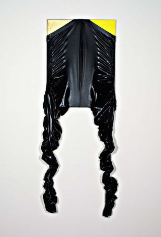 Shriveled Glint in Cantor, 16" x 41", lame leggings, oil, and gold leaf on canvas, 2009