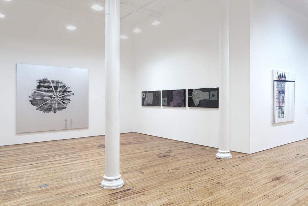 In works by Charline von Heyl, Tom Burr, and Jacqueline Humphries, the specter of physicality is evoked through subtle reference to constraint, loss, and desire. Von Heyl, in the very title of her painting Idolores, achieves a Verschiebung that resounds throughout the formal dislocations of the object. Suggestions of confinement and loss echo through Burr’s triptych of pinned t-shirts.