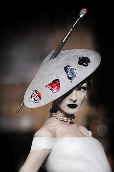 Stephen Jones for Christian Dior Haute Couture, “Olga Sherer inspiree par Gruau” Hat (2007-08) (photo via Catwalking.com)