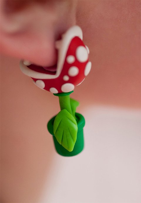 Super awesome accessory for any Mario fan! This Piranha Plant earring set made of polymer clay will sure put a bite in your day! Wear these anywhere and your sure to get a second look! Piranha Plant earrings have the appearance of having quite the grip on the ear. That’s a scary thought but don’t worry these adorable earrings will cause you no pain, maybe tears of joy though! Buy here.