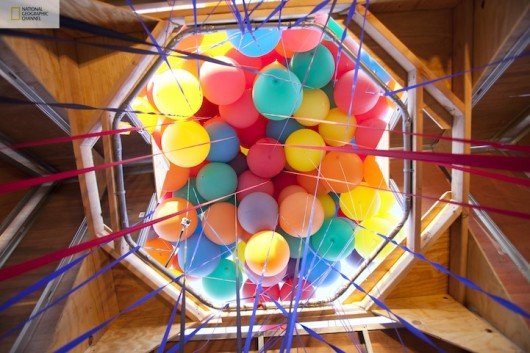 On the morning of March 5th, National Geographic Channel and a team of scientists, engineers and balloon pilots launched the 16 x 16 foot house with 300 8 foot balloons. The house floated around for about an hour and reached an altitude of over 10,000 feet. Look for more coverage of this in the fall of 2011 in a series called How Hard Can it Be.