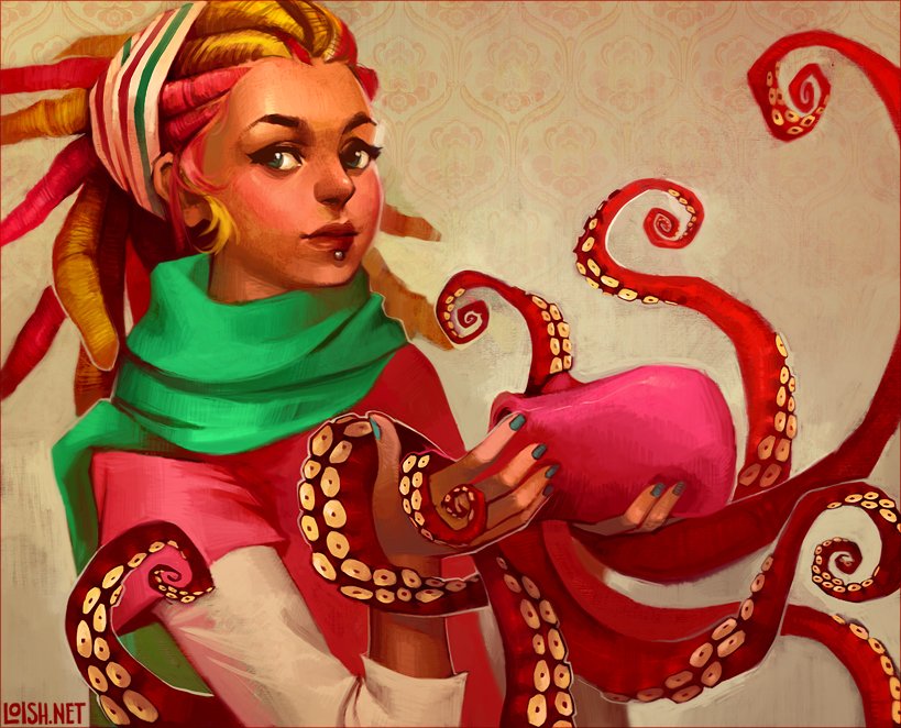 "I've been drawing since the day I could hold a pencil, but only in the last few years developed a preference for digital art and animation. Although I was born in Holland and have dutch nationality, I've lived all over the world, including the United States, Indonesia, France and Belgium. Drawing had always been my self-taught hobby. Upon finishing high school, I decided to study animation and pursue art as a career. I studied in Ghent (Belgium) for a year and then moved back to my home country to study at the Hogesschool voor de Kunsten Utrecht (HKU) in Hilversum. Besides animation, I continue to make illustrations and paint digitally on the side." - Lois Van Baarle