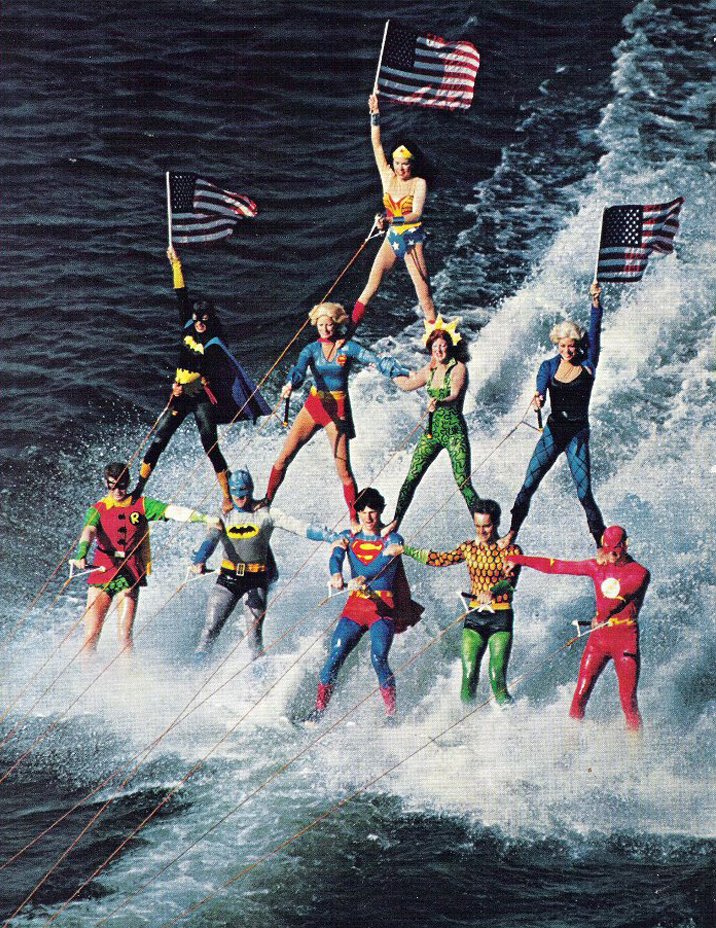 There's nothing about this that isn't completely awesome. I saw some pretty great waterski shows as a kid (usually as Cypress Gardens) but nothing with actual superheroes. My loss.