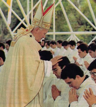 Jóvenes candidatos haciendo cola para  apuntarse a "Sacerdotes"