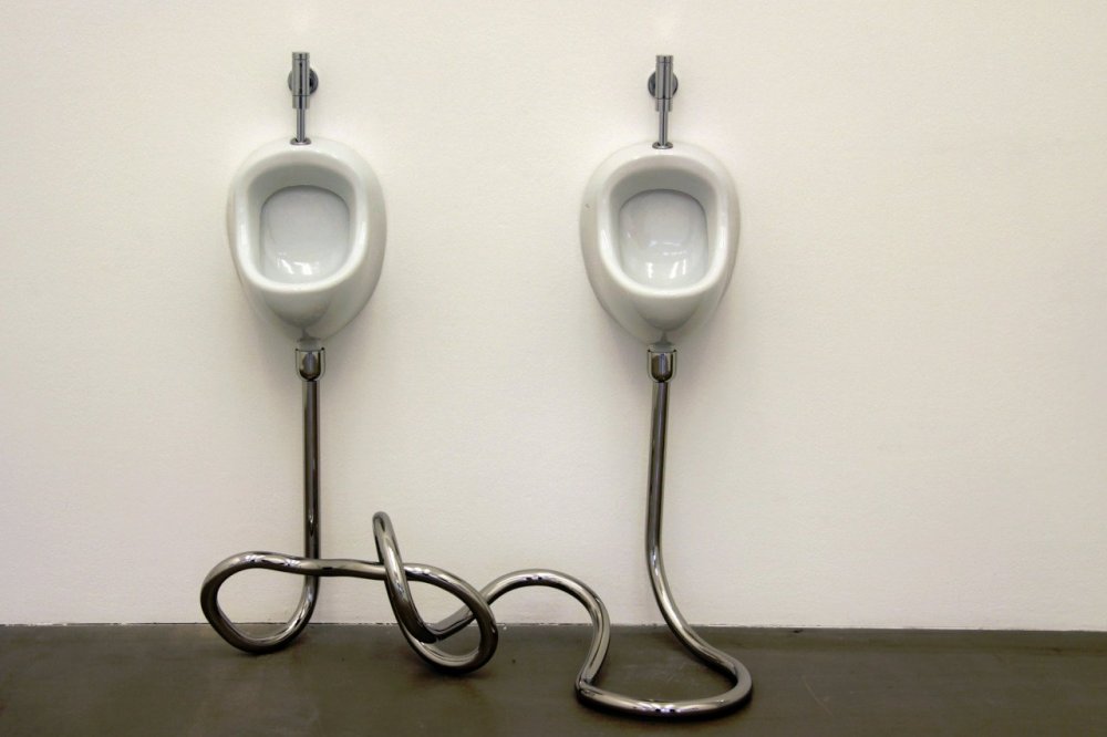 Porcelain urinals, taps, stainless steel tubing / Pissotières en porcelaine, robinets, tuyauterie d'acier inoxydable