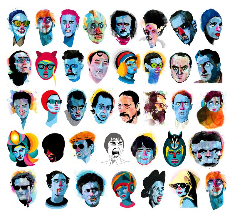 This illlustration brings many iconic faces together for one big head party. What relation do these heads have with one another? Not much, but they are fun to look at.