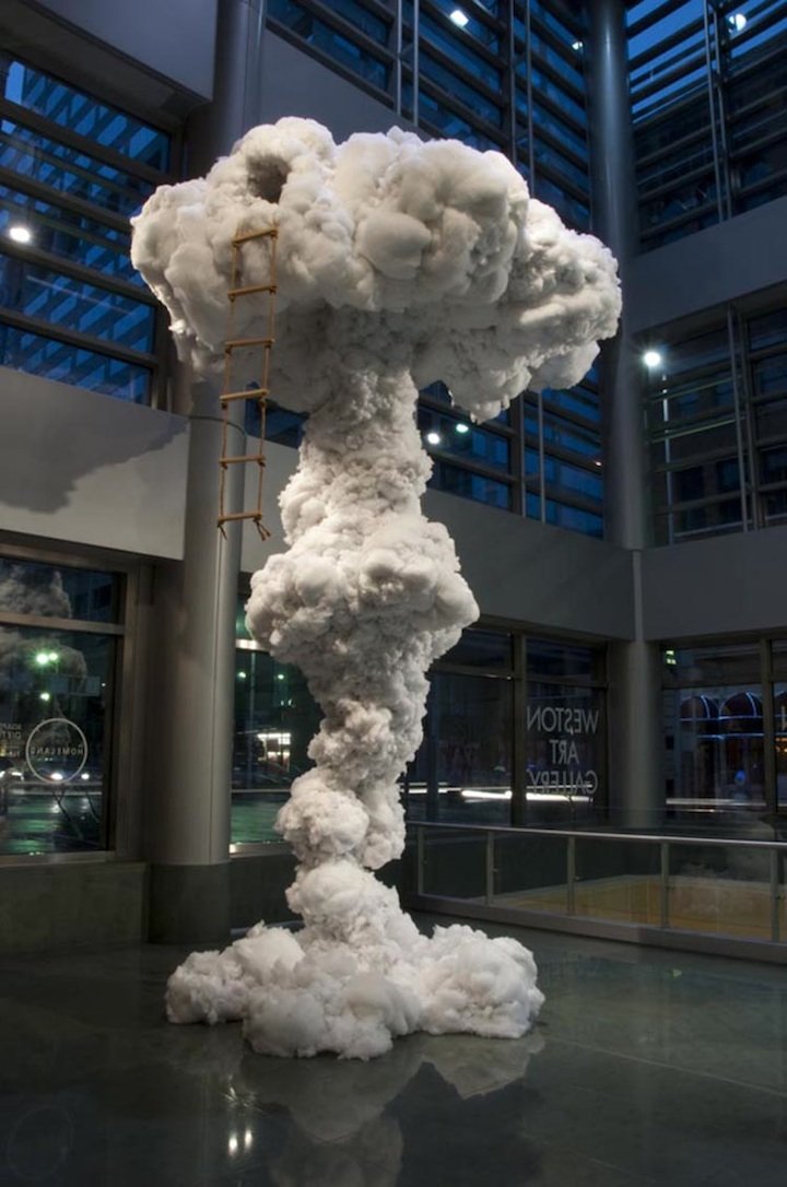 "In Playhouse, I combine an atomic bomb’s mushroom cloud, with one of the safest places one can go, their childhood playhouse," artist Dietrich Wegner tells us. "The playhouse is a place of escape, imagination, and comfort. Often we have used bombs to preserve our playhouse, causing us to be stuck in limbo, between comfort and fear. I question how mindful we are of the consequences of our actions. I search for images that articulate the confusion between the intentions, outcomes and ideals of my nation, while focusing on the spaces between beauty, fantasy, and reality.