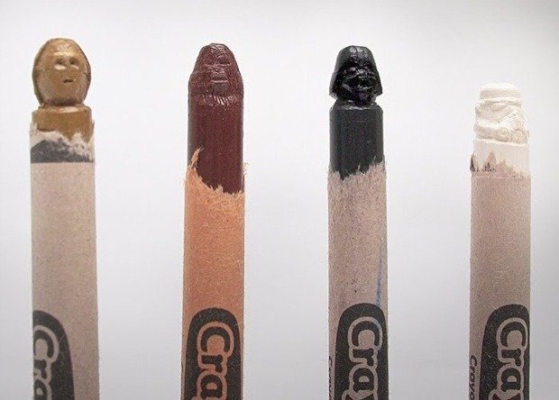Steve Thompson has combined two of my favorite things, Star Wars and spending rainy Sunday afternoons coloring in. Thompson has carved some favorite characters including Darth Vader, Chewbacca, C3PO, and a StormTrooper out of the tips of Crayola crayons.
