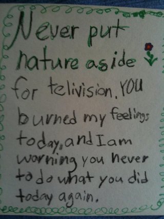 Never put nature aside for ‘telivision’. You burned my feelings today. And I am warning you never to do what you did today again.