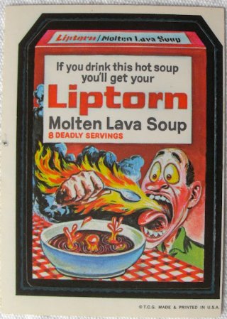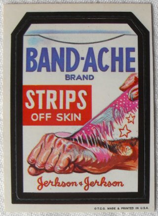 The illustrations are really great. These stickers are pretty much making fun of packaging from everyday products you find at the supermarket. They almost have a Mad magazine/Garbage Pail Kids feel to them. They were gross, funny and everything your parents told you to stay away from. Miss this type of humor. Is there anything of this nature today for kids of this generation?