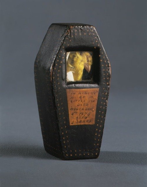 “This particular yellow canary was obviously a favoured pet as well as a working bird. Inscribed with the legend : ‘In Memory of Little Joe. Died November 3rd 1875. Aged 3 Years’