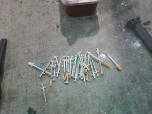 Among the items found during the scouring of the park: At least two dozen hypodermic needles.