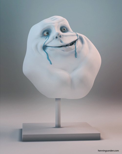The creepy looking Forever Alone meme got a complete 3D makeover by artist Henning Sanden. Check out the actual printed model below. Pretty weird and fun.