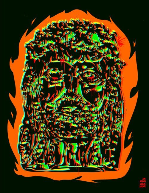 This is totally trippy radical dude. Reminds me of the old school 3D Comic books with the overlaying colors that creates a weird blurry fun confusion.
