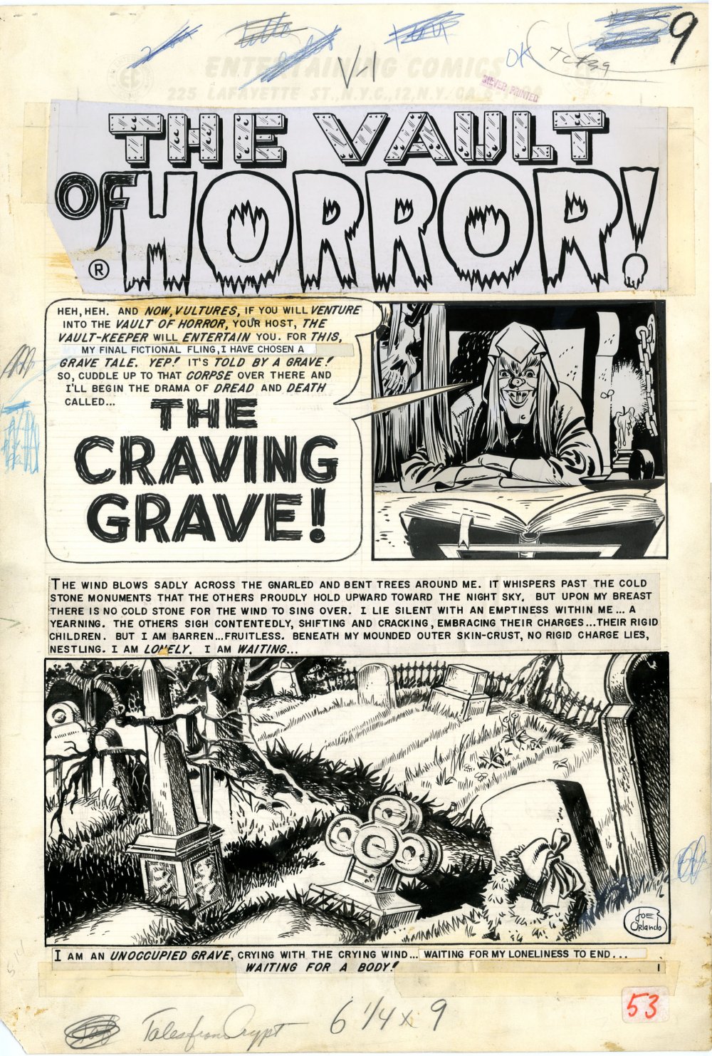 JOE ORLANDO - TALES FROM THE CRYPT #39 COMPLETE 7-PG STORY ORIGINAL ART