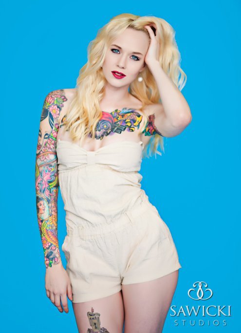 "I call myself an Alternative model. I'm free to do whatever I want, I love anything to do with concepts, fetish, different locations, working with interesting props, in the past I've worked with raw meat and in a recent shoot I had a dead squid draped over my shoulder".- INDIA ROSE