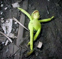 Is it a hoax? Is it real? If so, this kid is awfully brave to get so close to Kermit from Mars. Who knows how many diseases that thing has?